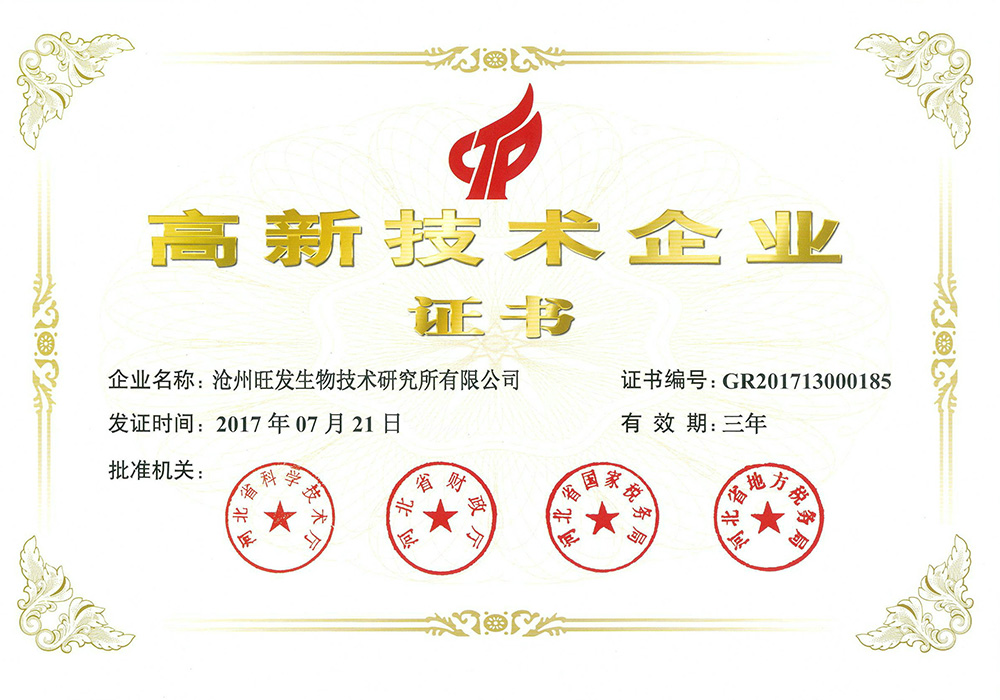 滄州旺發(fā)生物技術研究所有限公司創(chuàng)立于1993年,是集研發(fā)、生產、銷售于一體的微生態(tài)制劑生產“高新技術企業”、“國家知識產權優(yōu)勢企業”、“河北省農業產業化重點龍頭企業”、“河北省創(chuàng)新型中小企業”、“河北省專精特新中小企業”,目前,公司注冊資金1360萬元,生產占地80畝,擁有液、固態(tài)結合全自動發(fā)酵生產線及標準化全自動液態(tài)發(fā)酵、噴霧干燥生產線。
